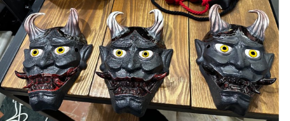 Глазурь — не краска. Она ведёт себя как слой, который взаимодействует с поверхностью, толщиной нанесения и обжигом. А при использовани эффектарной глазури различия еще более ощутимы. Плюс фарфор реально живой материал. И при обжиге это свойство фарфора индивидуализирует каждую маску. Например, у каждой Ханьи особенно загнуты рога.